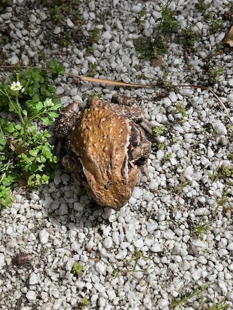 深山荘中庭に大きな蛙